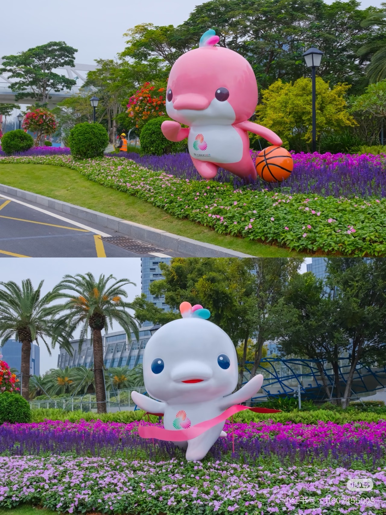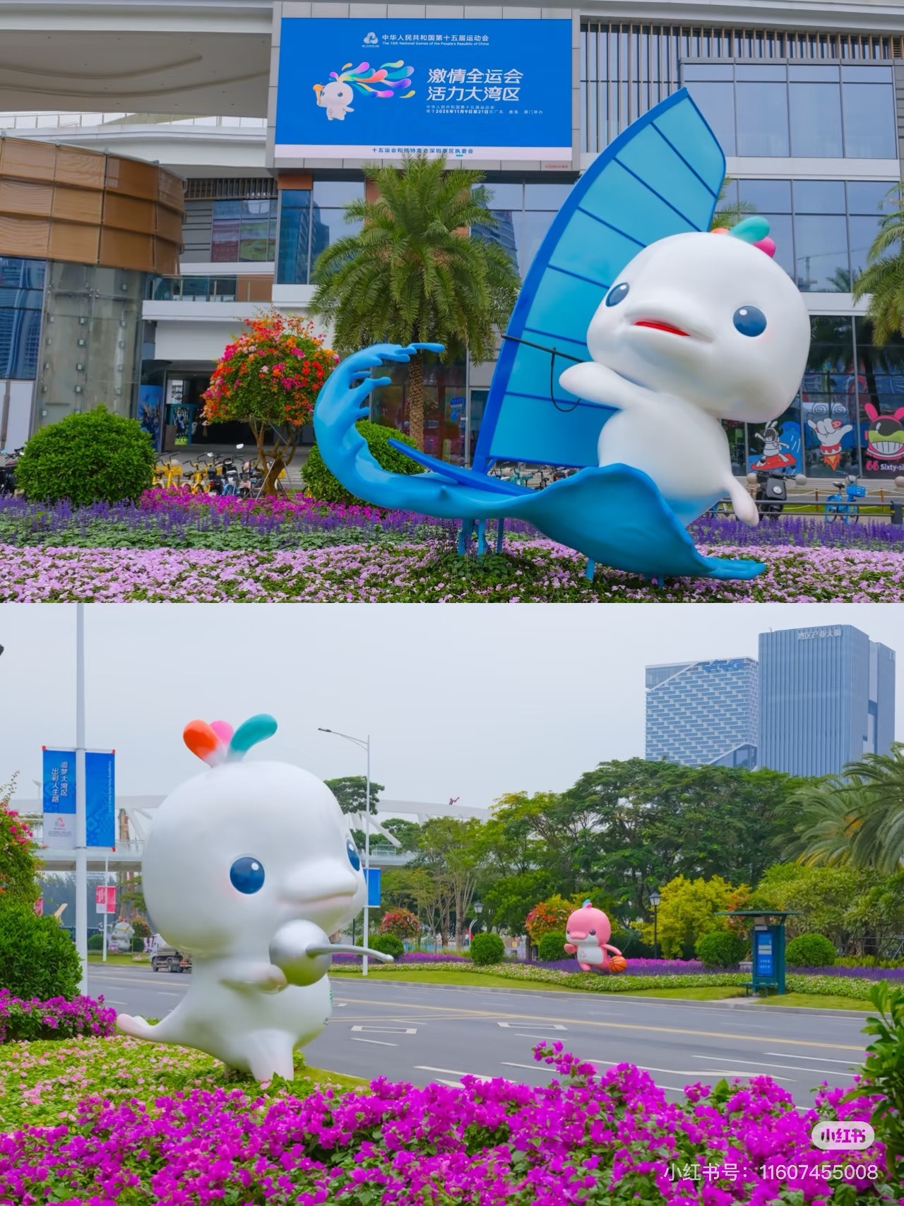 漫步欢乐港湾,打卡满是“十五运会”元素的街头。滨海艺术中心对面路上,摆满十五运会吉祥物装置,击剑、冲浪造型配上缤纷鲜花,随手拍都是运动风大片,出片率100%。